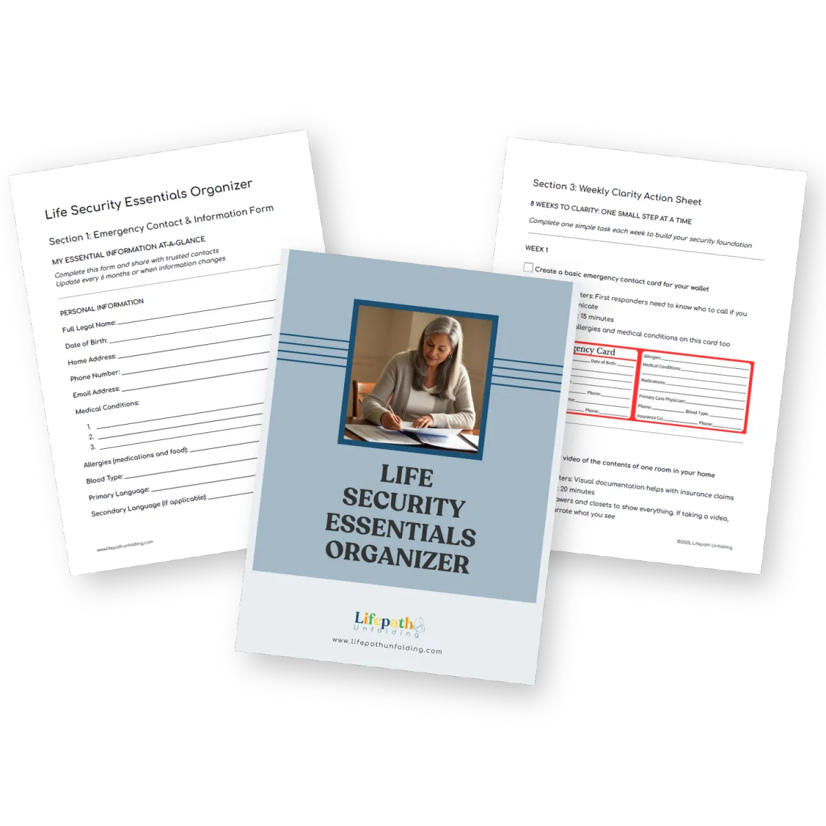 Enter your name and email address below to receive your downloadable Life Security Essentials Organizer.
